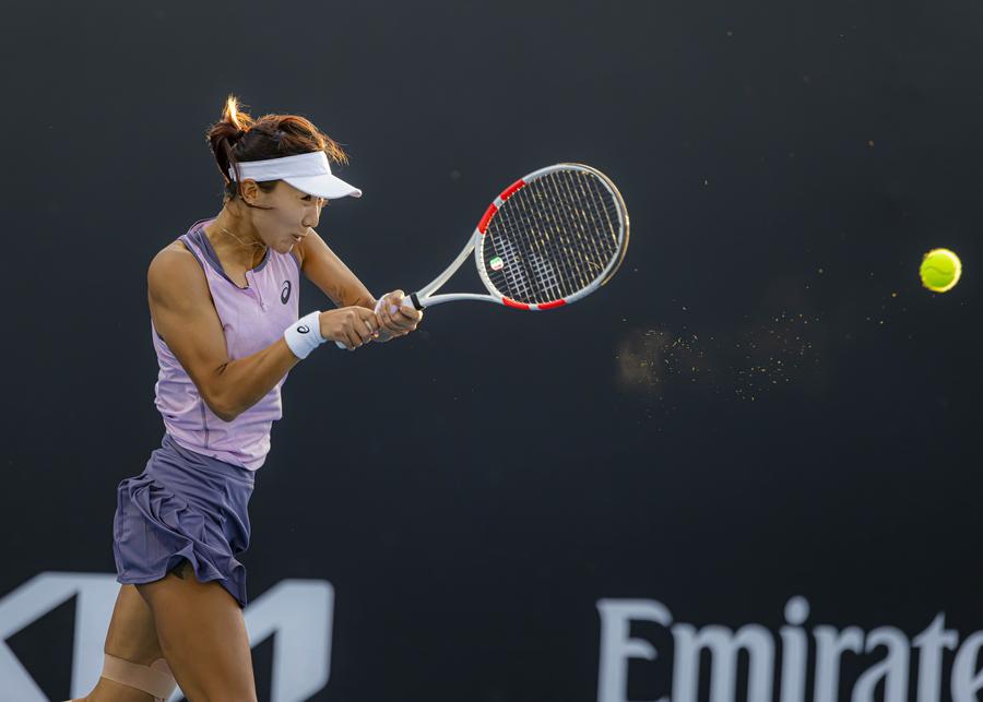 Gao Xinyu of China hits a return during the women's singles first round qualifying match against Anouk Koevermans of the Netherlands at the Australian Open in Melbourne, Australia, on Jan. 7, 2025. (Photo by Chu Chen/Xinhua)