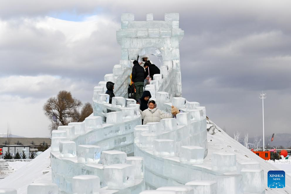 Tourists visit an ice and snow park by the Daheihe River in Hohhot, north China's Inner Mongolia Autonomous Region, Jan. 7, 2025. (Xinhua/Li Zhipeng)