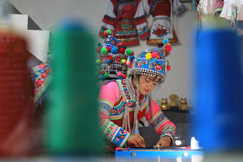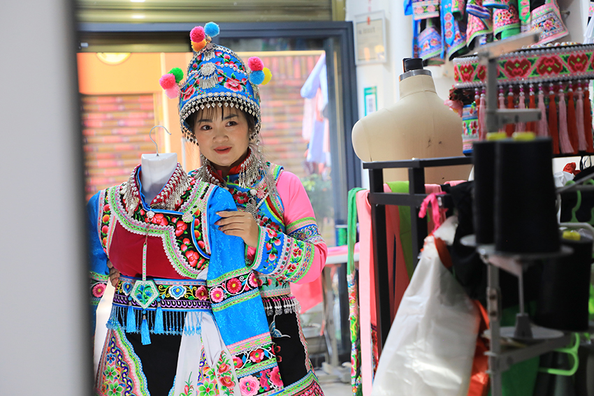 Li Jie, a skilled embroiderer from southwest China's Yunnan Province, infuses intangible cultural heritage items such as traditional embroidery and silver ornaments with modern fashion elements, creating ethnic costumes that captivate consumers and breathe new life into traditional clothing.