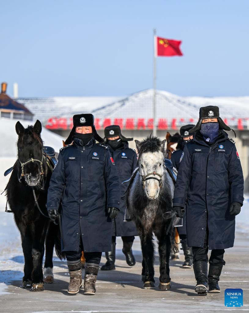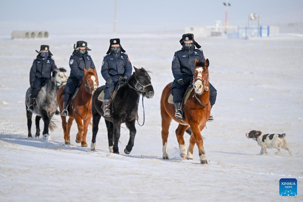 Mounted police patrol in Xilin Gol League, north China's Inner Mongolia Autonomous Region, Jan. 8, 2025.
