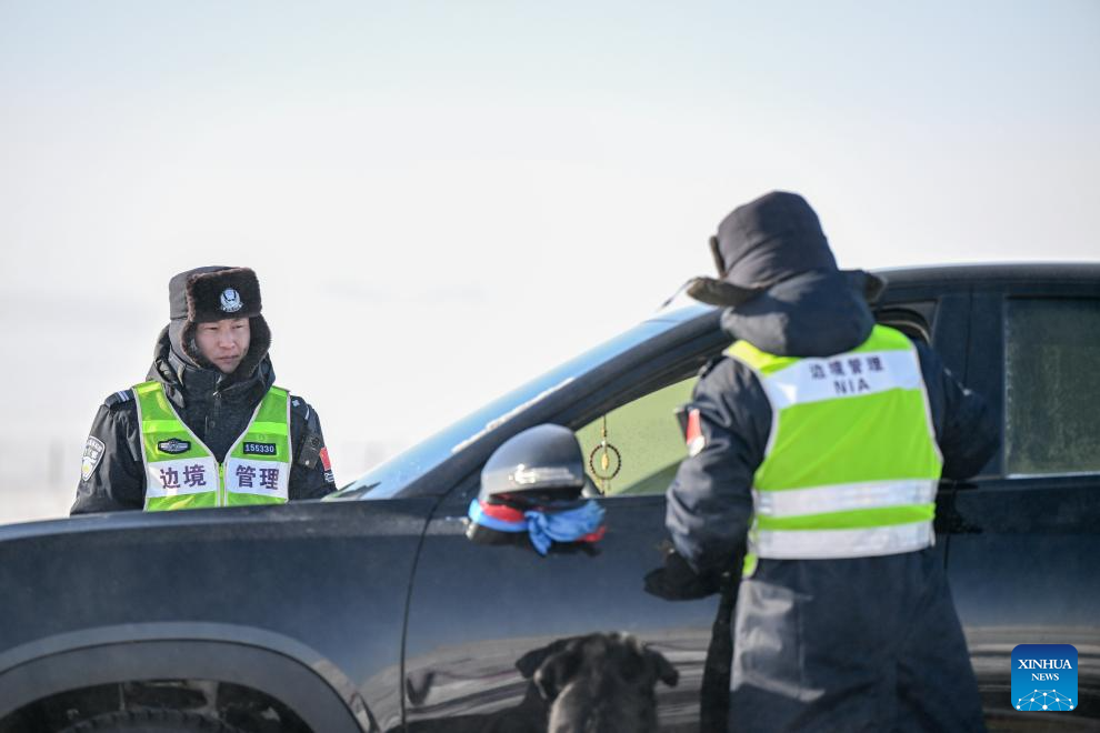 Policemen work at a checkpoint in Xilin Gol League, north China's Inner Mongolia Autonomous Region, Jan. 8, 2025. (Xinhua/Lian Zhen)