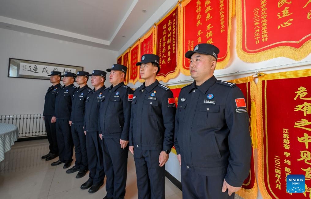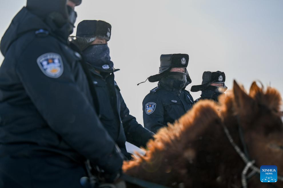 Police set to patrol in Xilin Gol League, north China's Inner Mongolia Autonomous Region, Jan. 8, 2025. (Xinhua/Lian Zhen)