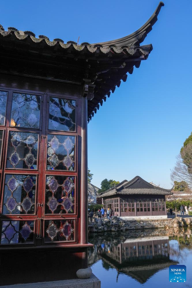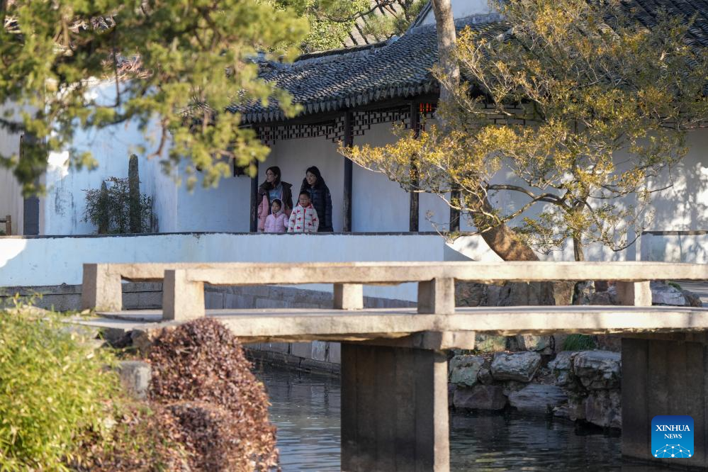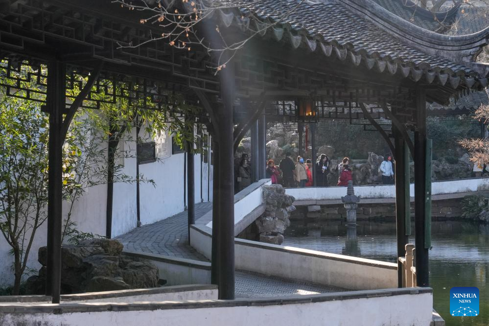 Tourists visit the Humble Administrator's Garden in Suzhou, east China's Jiangsu Province, Jan. 9, 2025. The Humble Administrator's Garden was inscribed in the list of World Cultural Heritage by the UNESCO in 1997. (Xinhua/Li Bo)