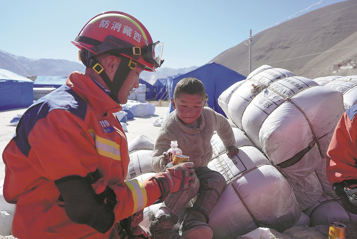 Xu Xiwei, a professor at China University of Geosciences Beijing, said the Xizang autonomous region is located on a plateau where it is extremely cold with low oxygen levels. It is easy for people living in lower altitude areas to suffer from altitude sickness while participating in rescue efforts. So it was important to engage the local population in rescue efforts, he said.