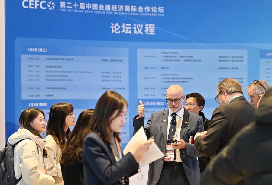 TIANJIN, Jan. 9 (Xinhua) -- The 20th China Expo Forum for International Cooperation (CEFCO), a key annual event in the global exhibition industry, opened in north China's Tianjin Municipality on Thursday, highlighting international exchanges and cooperation.