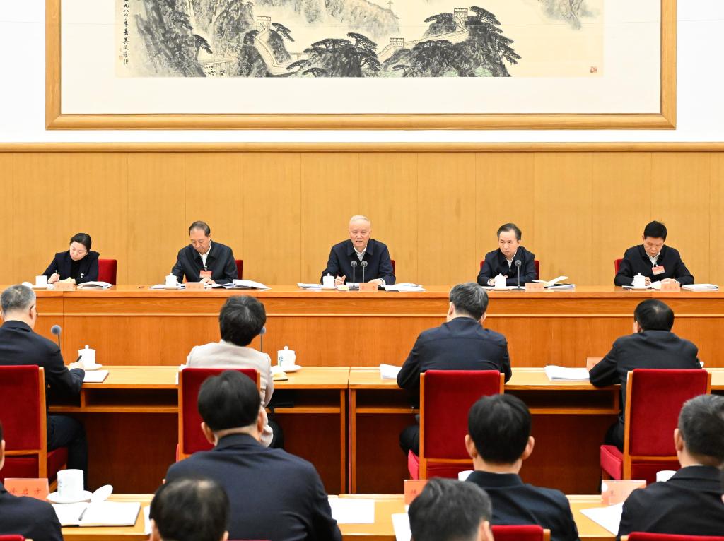 Cai Qi, a member of the Standing Committee of the Political Bureau of the Communist Party of China (CPC) Central Committee and a member of the Secretariat of the CPC Central Committee, attends and addresses a symposium on Party building in emerging fields in Beijing, capital of China, Jan. 10, 2025. (Xinhua/Shen Hong)