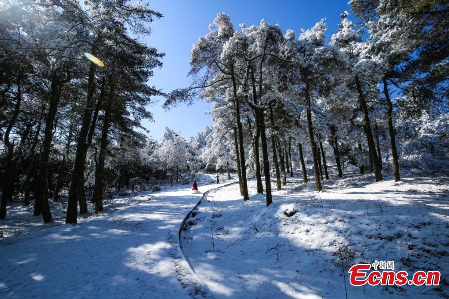 Yushe National Forest Park is turned to a white fairyland by snow and rime in Liupanshui, southwest China's Guizhou Province, Jan. 12, 2025. (Photo: China News Service/Zhao Hua)
