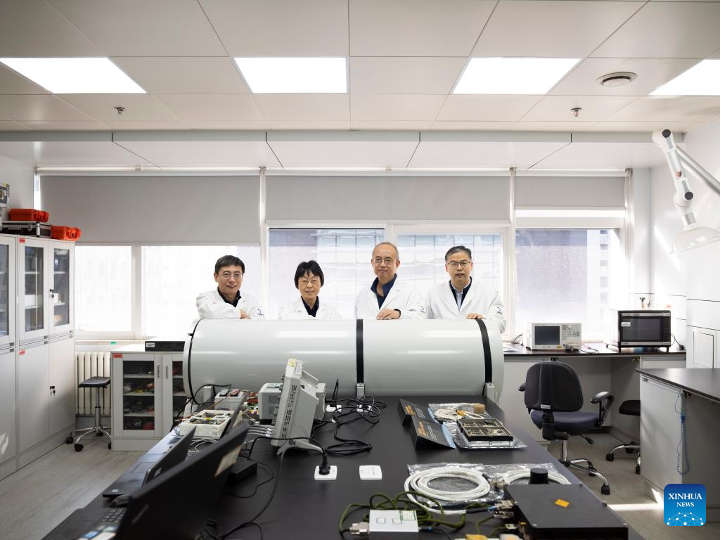 Researchers Du Aimin, Chen Ling, Qin Xiaoguang, Zhang Jinhai (from L to R) of the Institute of Geology and Geophysics at the Chinese Academy of Sciences (CAS), are pictured in Beijing, capital of China, Jan. 14, 2025. (Xinhua/Jin Liwang)