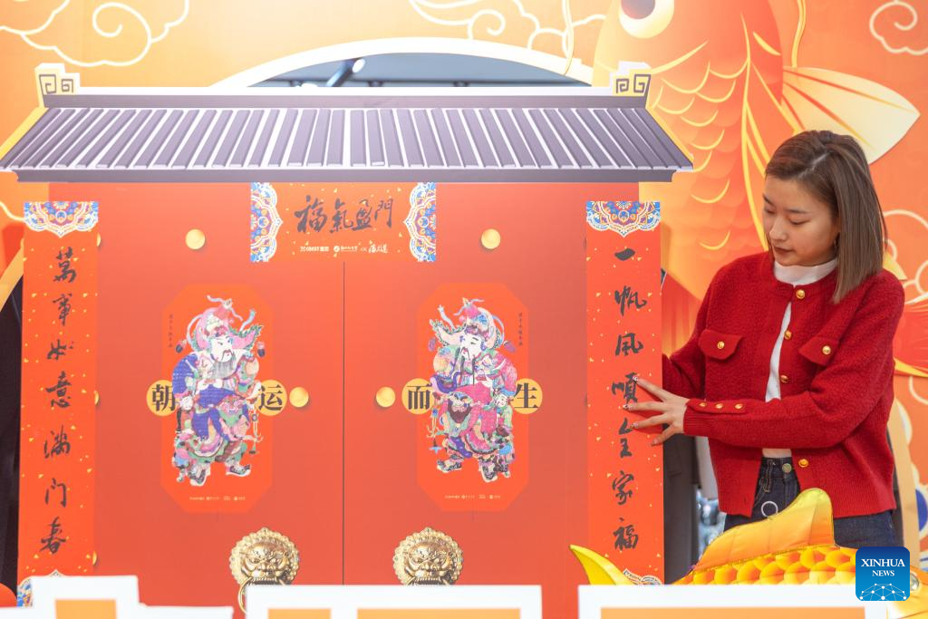 A decoration bearing Liangping Woodblock New Year Pictures is seen at a shopping mall in Liangping District of southwest China's Chongqing, Jan. 15, 2025.