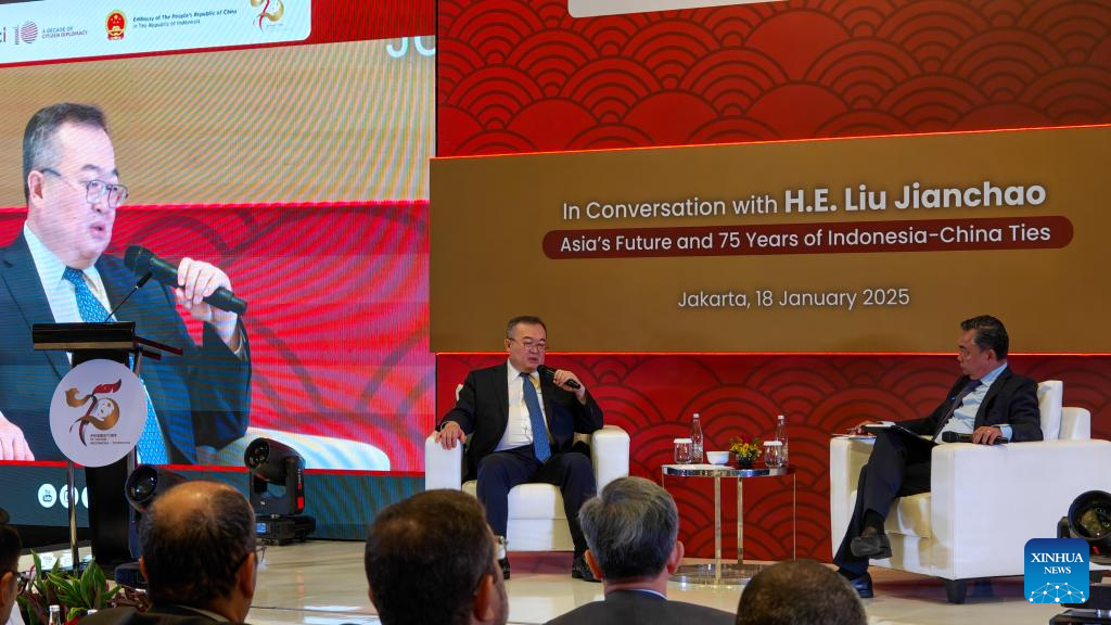 Liu Jianchao, head of the International Department of the Communist Party of China (CPC) Central Committee, delivers a speech at the Foreign Policy Community of Indonesia in Jakarta, Indonesia, Jan. 18, 2025. A delegation of the CPC, led by Liu Jianchao, visited Indonesia from Thursday to Sunday. (Xinhua/Xu Qin)