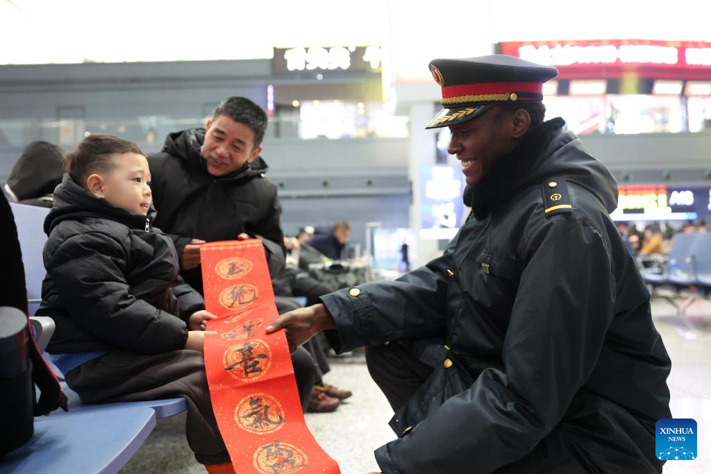 "As the Spring Festival is around the corner, being a volunteer for the travel season and helping passengers return home for family reunions is a joyful experience to be proud of," said Kalbe Brai Madoue, a student from Chad.