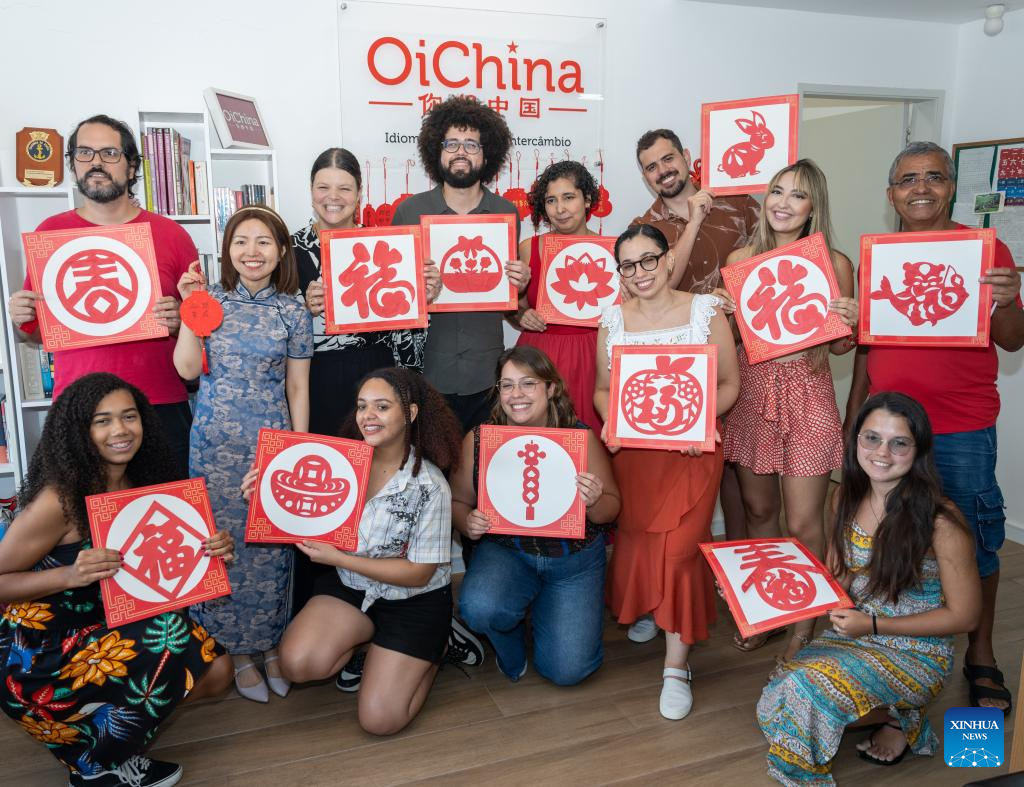 People display the paper cutting works they made at a Chinese New Year cultural experience event in Rio de Janeiro, Brazil, on Jan. 18, 2025. The cultural experience event celebrating the Chinese New Year was held at the "OiChina" Chinese language school in Rio de Janeiro on Saturday. (Xinhua/Wang Tiancong)
