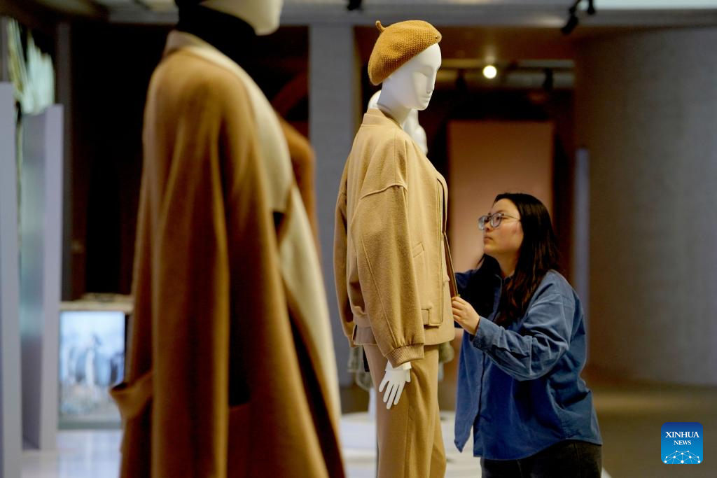 A staff member arranges cashmere clothes at the exhibition hall of a cashmere products manufacturer in Qinghe County, Xingtai City, north China's Hebei Province, Jan. 18, 2025. Cashmere products manufacturers in Qinghe County are busy with production for orders before the upcoming Spring Festival holidays. Qinghe County is a renowned cashmere raw material processing and distribution center, cashmere spinning base and an important production and marketing base of cashmere products in China. (Xinhua/Mu Yu)