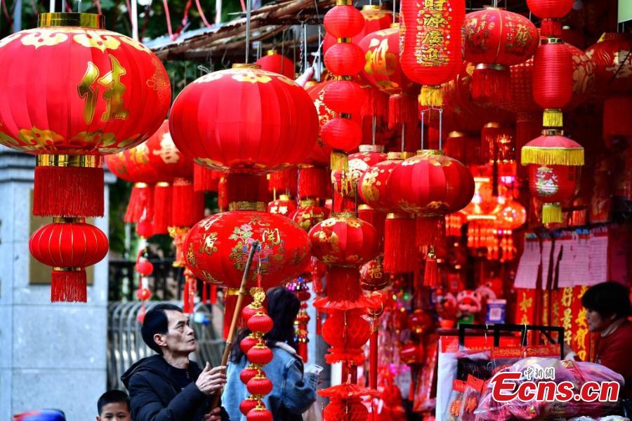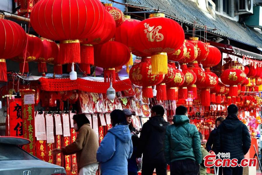 People shop for Spring Festival decorations in Fuzhou, east China's Fujian Province, Jan. 19, 2025. (China News Service/Zhang Bin)
