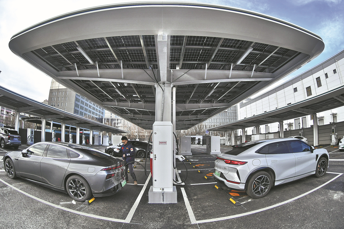 A person charges an electric car at a smart green charging station in Beijing on Dec 26. (Li Xin/Xinhua)