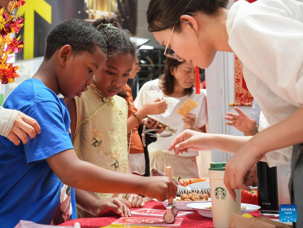 People experience rubbing culture at a Chinese New Year gala held in Nairobi, Kenya, Jan. 19, 2025. (Xinhua/Li Yahui)
