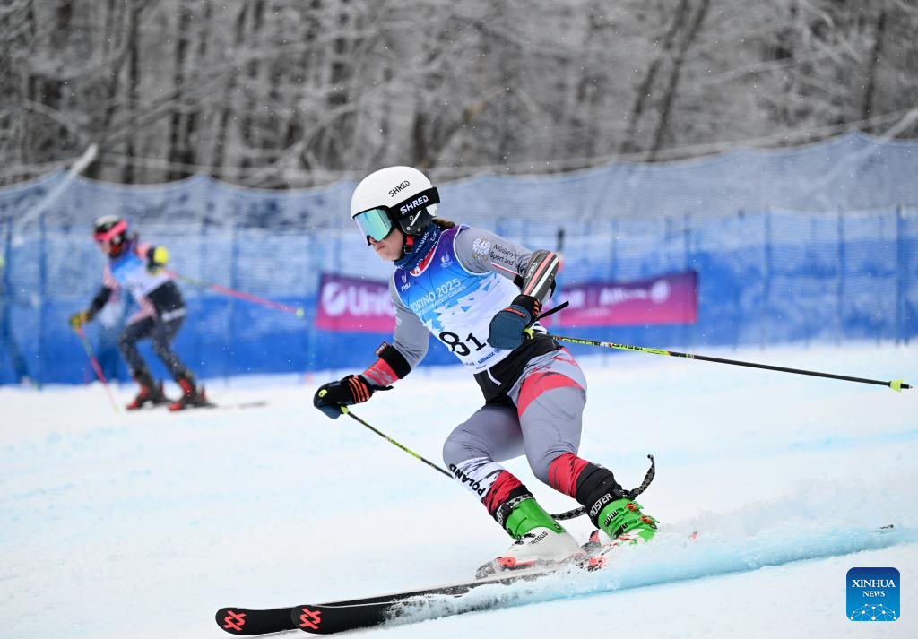 Aniela Sawicka of Team Poland competes during the 1/8 final of the alpine skiing mixed team parallel competition at the 2025 FISU Winter World University Games in Bardonecchia, Italy, Jan. 20, 2025. (Xinhua/He Canling)