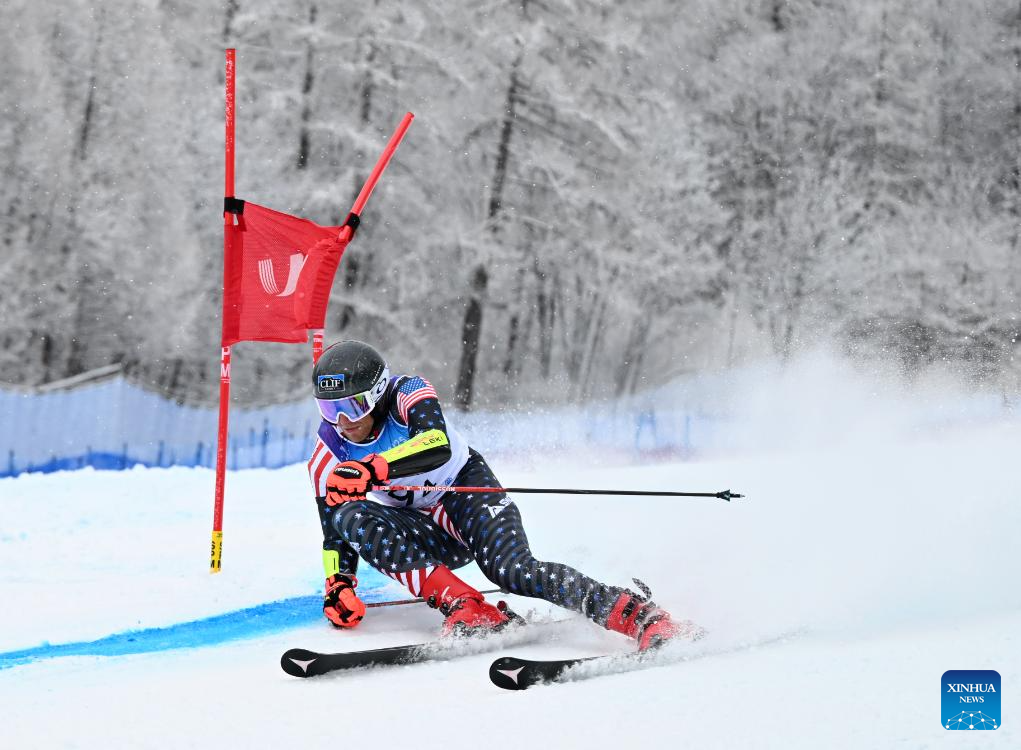 Jack Bowers of Team USA competes during the 1/8 final of the alpine skiing mixed team parallel competition at the 2025 FISU Winter World University Games in Bardonecchia, Italy, Jan. 20, 2025. (Xinhua/He Canling)
