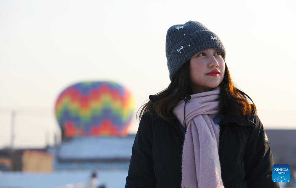 May Thet Hnynn, an international student from Myanmar, visits a creative agriculture industrial park in Shenyang, northeast China's Liaoning Province, Jan. 12, 2025. In recent years, Shenyang has explored its ice and snow tourism resources, attracting numerous tourists. (Xinhua/Yang Qing)