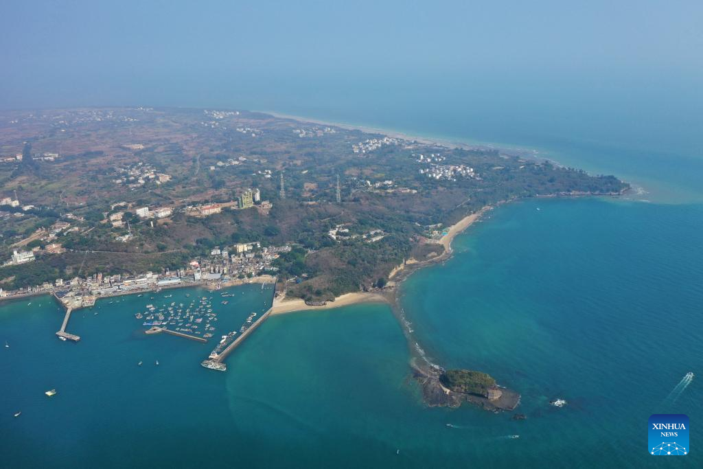 An aerial drone photo taken on Jan. 16, 2025 shows a view of Weizhou Island in south China's Guangxi Zhuang Autonomous Region. Weizhou Island, located in the Beibu Gulf, is China's youngest volcanic island. In recent years, the local government has strengthened marine ecological protection and developed infrastructure on the island, making it a popular tourist destination. (Xinhua/Cao Yiming)