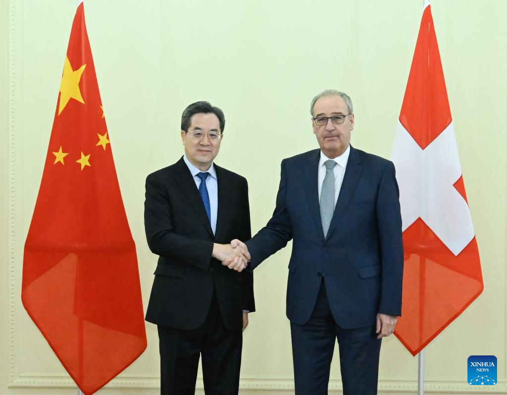 Ding, also a member of the Standing Committee of the Political Bureau of the Communist Party of China Central Committee, met with Karin Keller-Sutter, president of the Swiss Confederation and head of the Federal Department of Finance, and held talks with Guy Parmelin, vice president of the Federal Council and head of the Federal Department of Economic Affairs, Education and Research, on the sidelines of the World Economic Forum (WEF) Annual Meeting 2025.