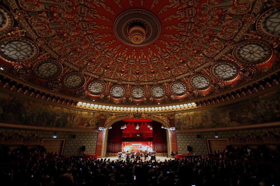 This photo taken on Jan. 20, 2025 shows a scene of the "2025 Happy Spring Festival" Chinese traditional music concert at the Romanian Athenaeum in Bucharest, capital of Romania. (Photo by Cristian Cristel/Xinhua)
