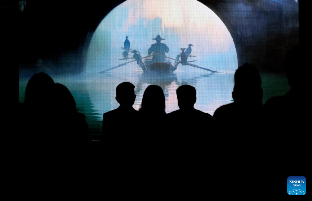 A man visits a photography exhibition during "Happy Chinese New Year - Charm of Jiangsu" Cultural and Tourism Promotion, held in London, Britain, Jan. 21, 2025. (Xinhua/Li Ying)