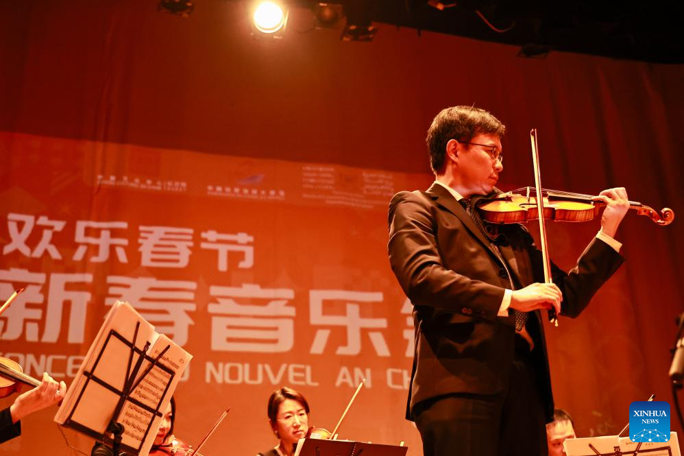 Chinese musicians perform during a concert to celebrate the upcoming Chinese Spring Festival in Rabat, Morocco, Jan. 15, 2025. (Xinhua/Huo Jing)