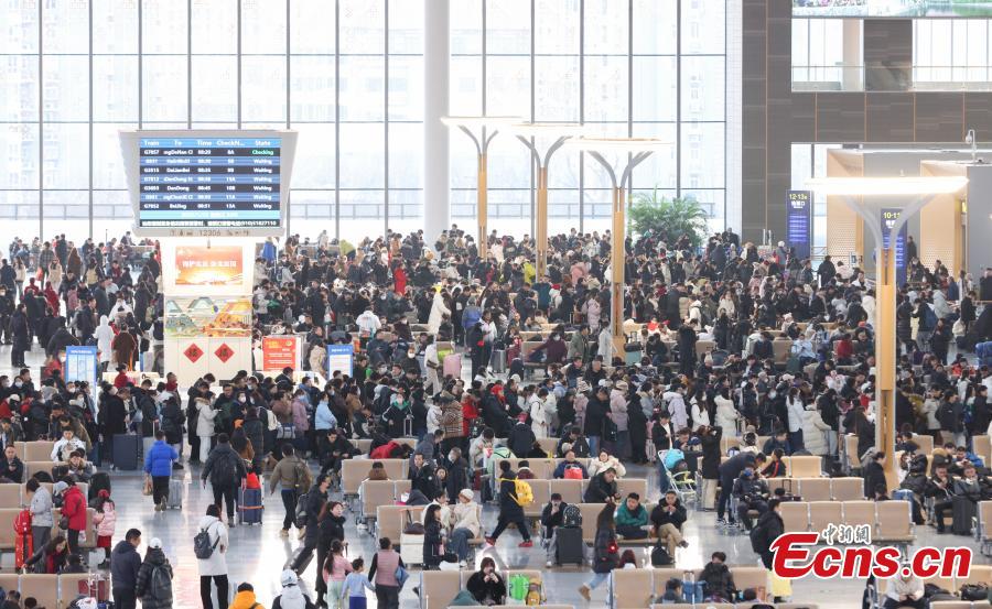 Passengers wait to take trains at Chaoyang Railway Station in Beijing, Jan. 22, 2025. (China News Service/Jia Tianyong)