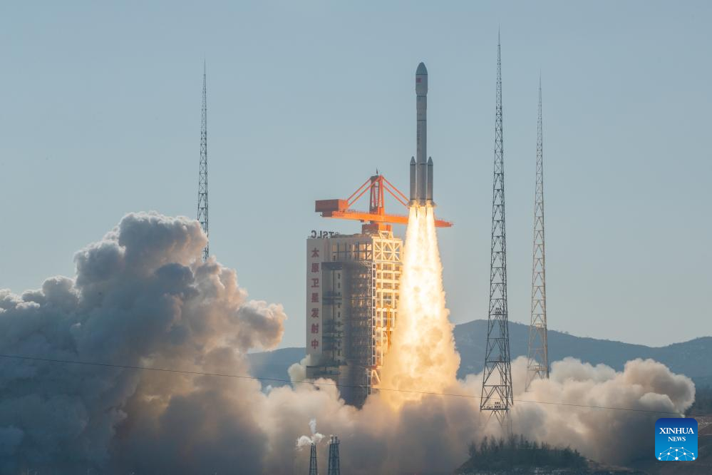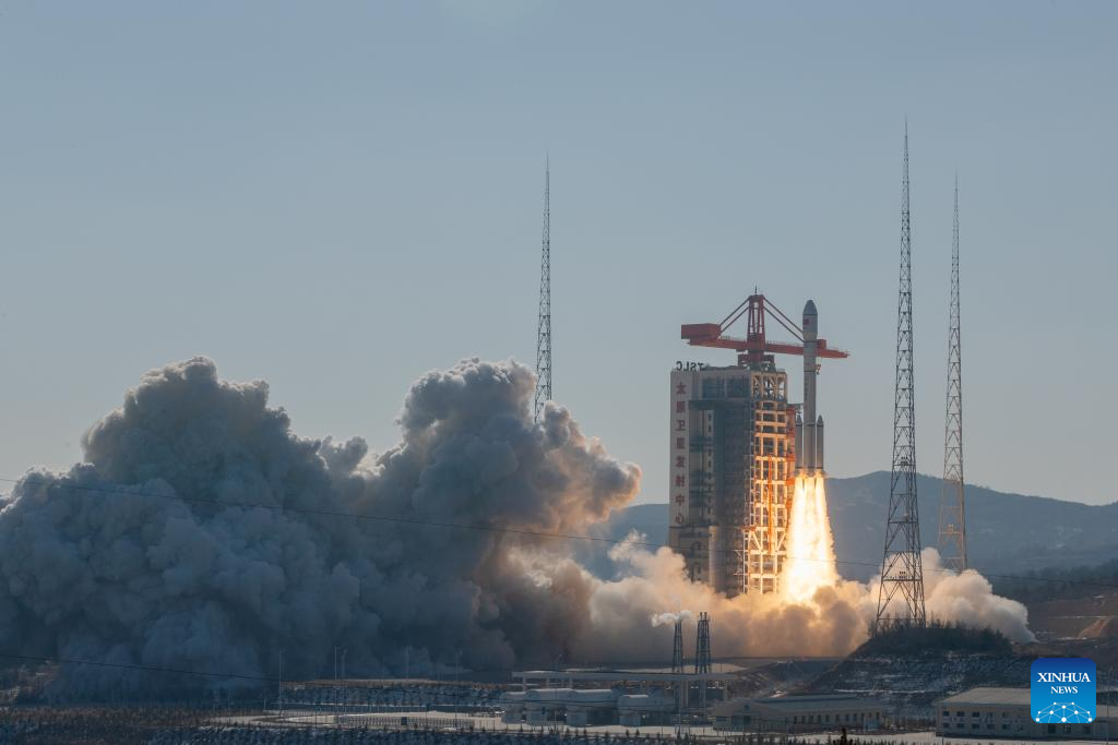 A satellite group is launched aboard a modified Long March-6 carrier rocket from the Taiyuan Satellite Launch Center in north China's Shanxi Province, Jan. 23, 2025. The satellite group, which is the sixth batch that will constitute the Spacesail Constellation, was launched at 1:15 p.m. (Beijing Time) and entered its preset orbit successfully. (Photo by Zheng Taotao/Xinhua)
