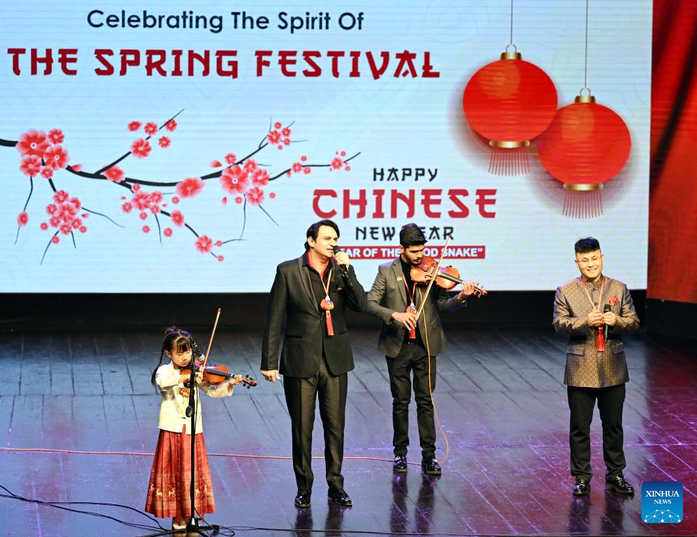 Chinese and Pakistani artists perform during an event to celebrate the upcoming Chinese New Year in Islamabad, capital of Pakistan, on Jan. 22, 2025. The event features vibrant traditional dances by both Chinese and Pakistani performers, showcasing the rich cultural heritage of the two nations. (Xinhua/Ahmad Kamal)