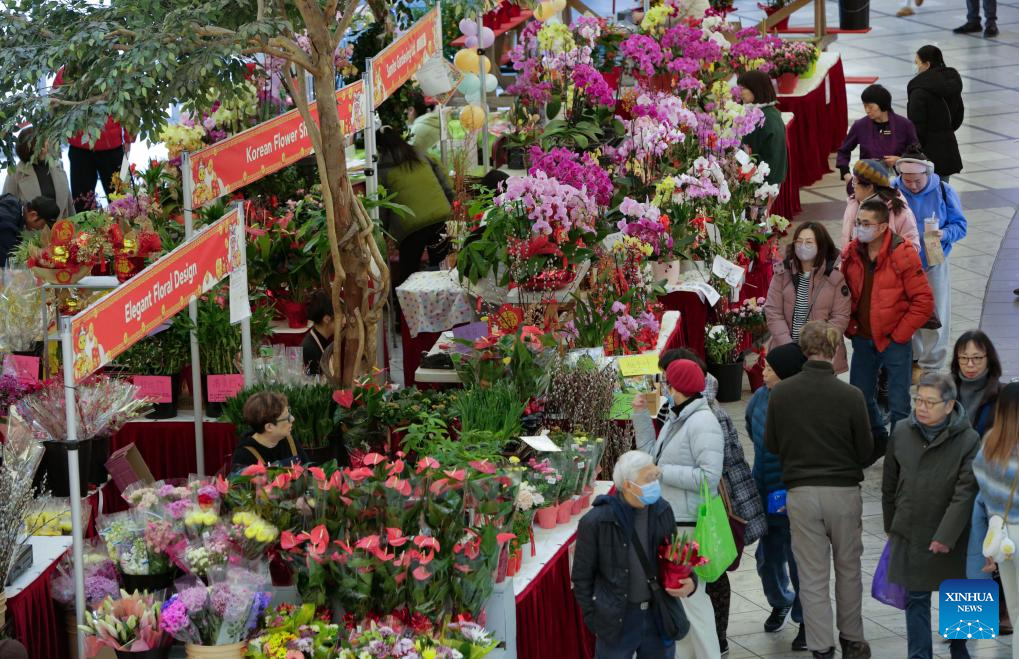 People visit the 2025 Chinese Lunar New Year Flower and Gift Fair in Richmond, British Columbia, Canada, Jan. 23, 2025. The fair kicked off here on Thursday and runs until Jan. 29. (Photo by Liang Sen/Xinhua)