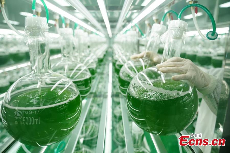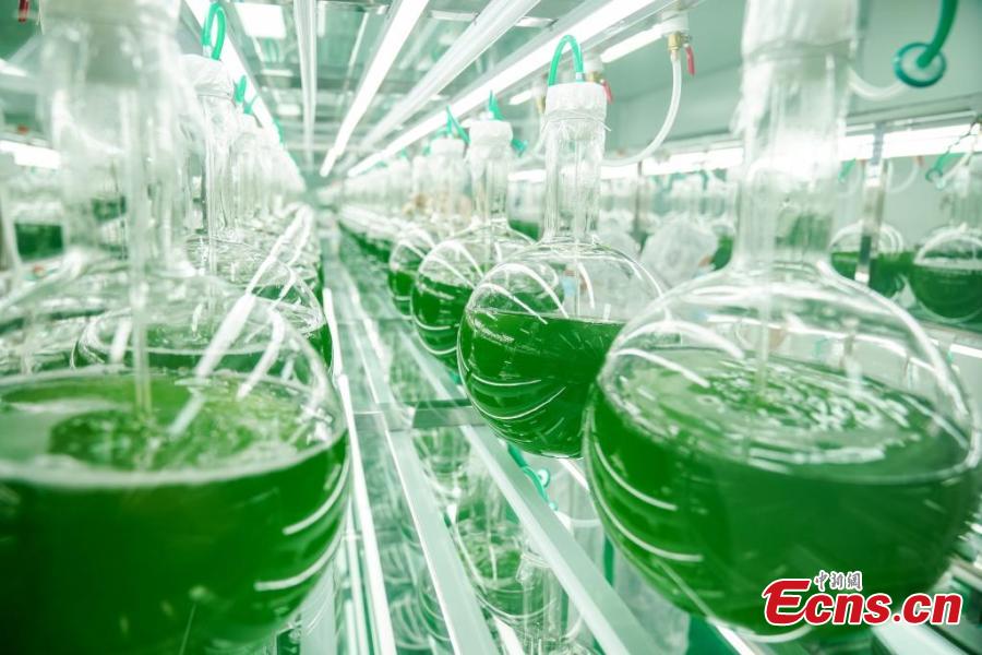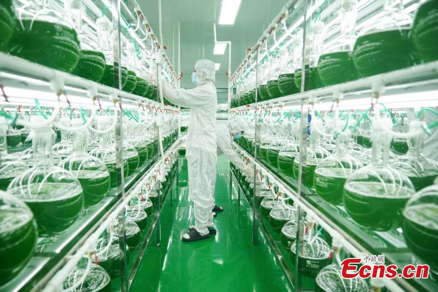 Scientists work at the world's largest astaxanthin production base in Pingbian County, Honghe Prefecture, southwest China's Yunnan Province, Jan. 23, 2025. (China News Service/Liu Ranyang)