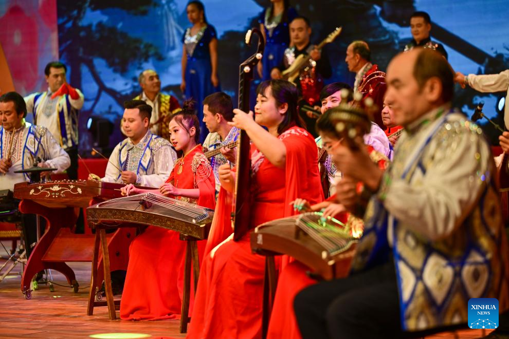 Artists plays traditional musical instruments during a "village gala" in Shache County of Kashgar, northwest China's Xinjiang Uygur Autonomous Region, Jan. 23, 2025.