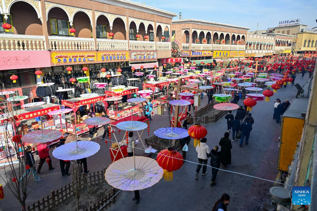 This photo taken on Jan. 22, 2025 shows a view of a food fair as part of a "village gala" in Shache County of Kashgar, northwest China's Xinjiang Uygur Autonomous Region.