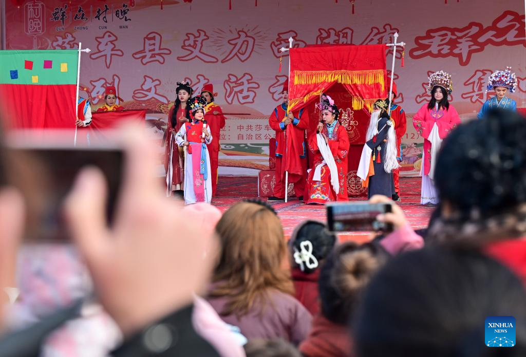 People perform a traditional opera during a "village gala" in Shache County of Kashgar, northwest China's Xinjiang Uygur Autonomous Region, Jan. 22, 2025.