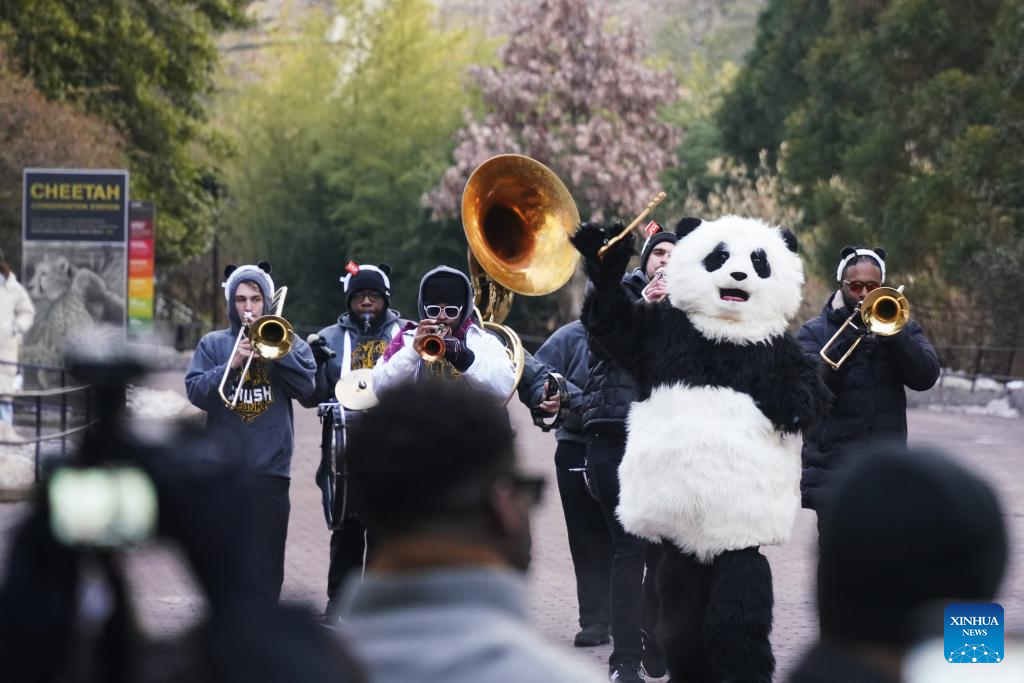 Kids perform during the ceremony to celebrate the official public debut of the giant pandas at the Smithsonian's National Zoo in Washington, D.C., the United States, Jan. 24, 2025. The giant panda couple, Bao Li and Qing Bao, made their first public appearance on Friday since their arrival at the Smithsonian's National Zoo here. Sent as part of a 10-year international giant panda protection cooperation program, the three-year-old pandas, Bao Li, male, and Qing Bao, female, departed their hometown in Sichuan Province and arrived in the U.S. capital city on Oct. 15, 2024. (Xinhua/Wu Xiaoling)