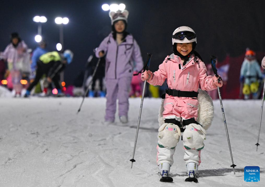 Tourists ski at a ski resort in Shennongjia Forestry District, central China's Hubei Province, Jan. 22, 2025. In recent years, with rich ski resorts and ecotourism resources, Shennongjia Forestry District has witnessed a large number of tourists in winter. The booming tourism has also advanced the development of local "ice and snow economy." (Xinhua/Du Zixuan)