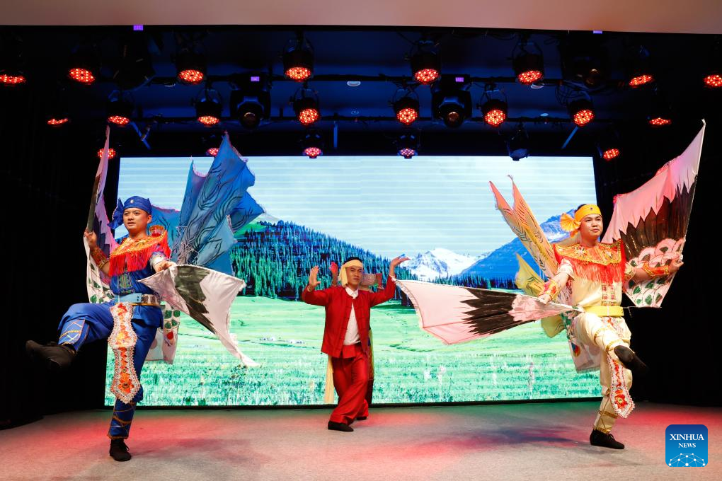 Dancers perform during an event to celebrate the Spring Festival and boost China-Myanmar cultural exchange at the China Cultural Center in Yangon, Myanmar, Jan. 24, 2025. (Xinhua/Myo Kyaw Soe)