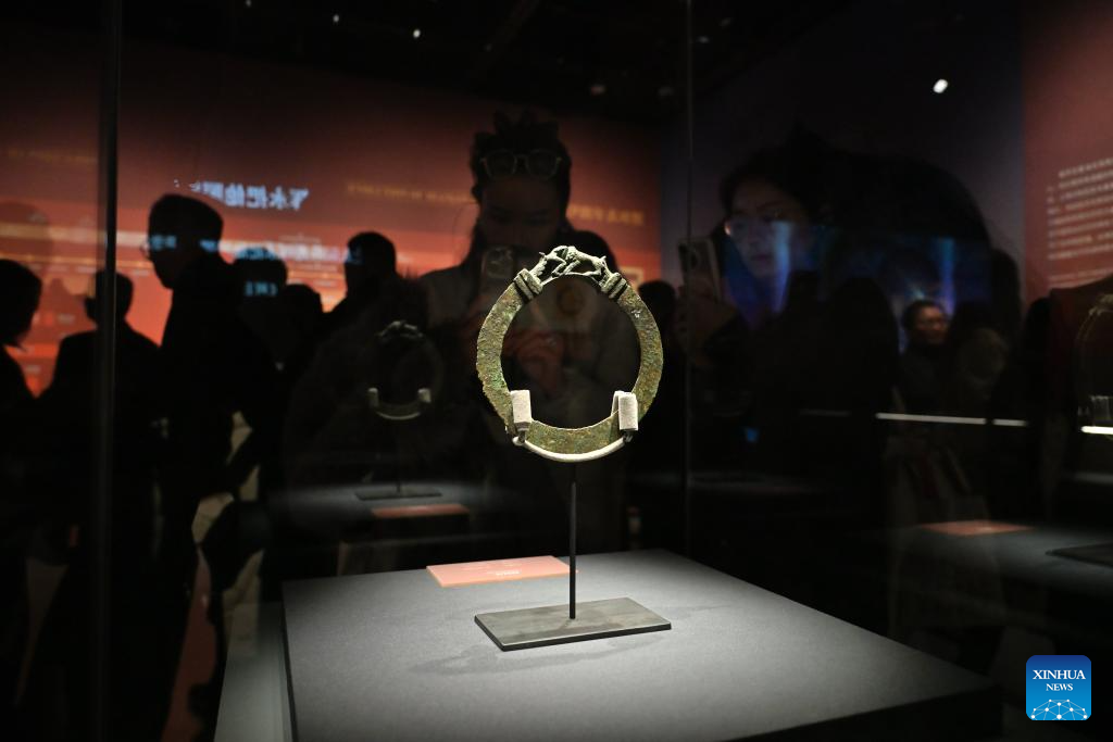 People visit at an exhibition of Persian artifacts in Sichuan University Museum in Chengdu, southwest China's Sichuan Province, Jan. 25, 2025. The exhibition kicked off here Saturday, showcasing 151 historical pieces or sets of artifacts, which included ceramic, metal and glass objects, as well as textiles, carpets and paintings, from five museums in Iran. (Photo by Yan Qi/Xinhua)