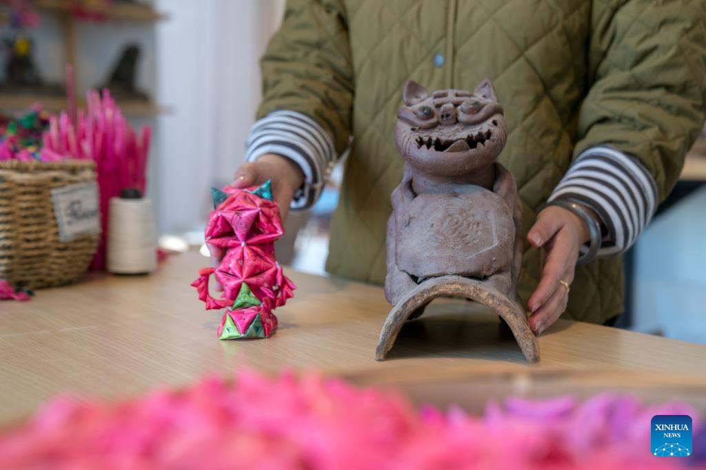 Yang Jie, a "post-90s" artisan from Kunming of southwest China's Yunnan Province, has been dedicated to this craft since her graduation. The period before the Spring Festival is her busiest time, during which she will receive invitations from fairs across the country and will also make festive-themed works based on client requests. (Photo by Peng Yikai/Xinhua)