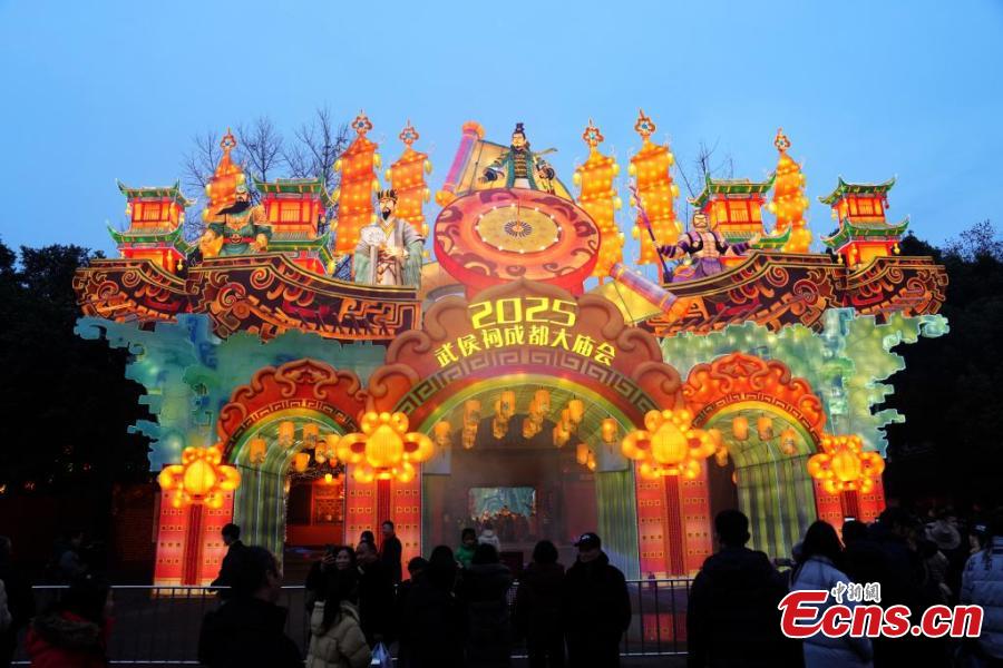 Lanterns are lit up in Chengdu Wuhou Shrine to celebrate Spring Festival in southeast China's Sichuan Province, Jan. 25, 2025. (China News Service/An Yuan)