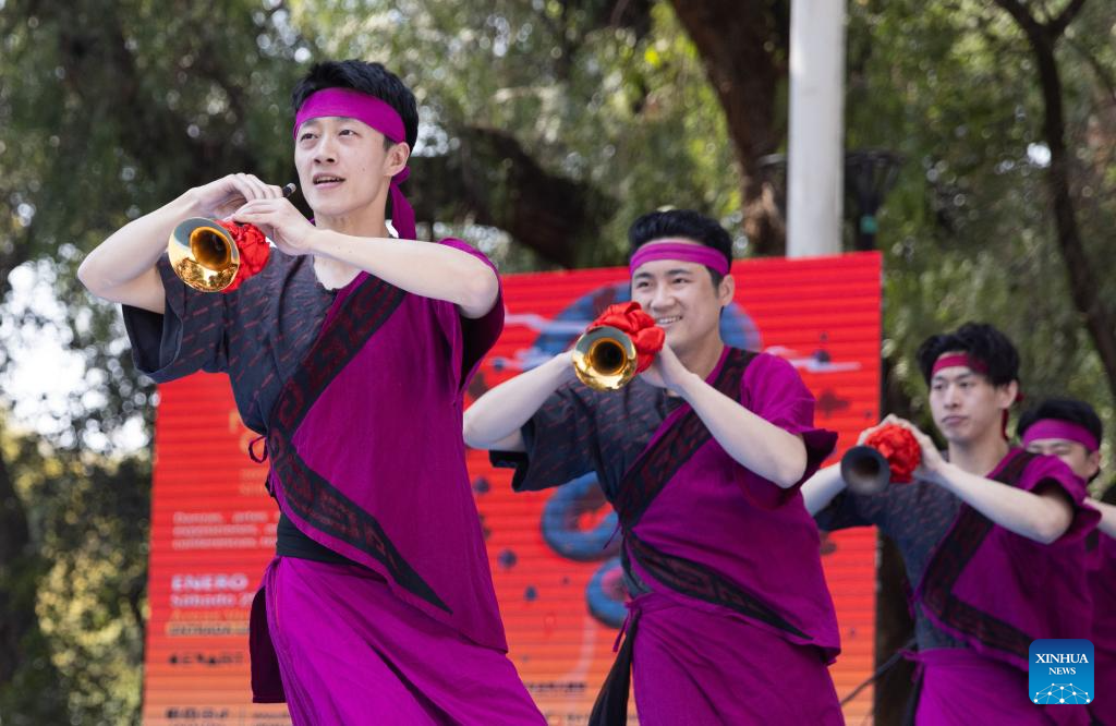 Performers play traditional Chinese instruments at the 4th edition of the Chinese New Year cultural festival at the National Arts Center in Mexico City, capital of Mexico, Jan. 25, 2025. The cultural festival kicked off here Saturday to celebrate the upcoming Spring Festival, or the Chinese Lunar New Year. (Xinhua/Li Mengxin)