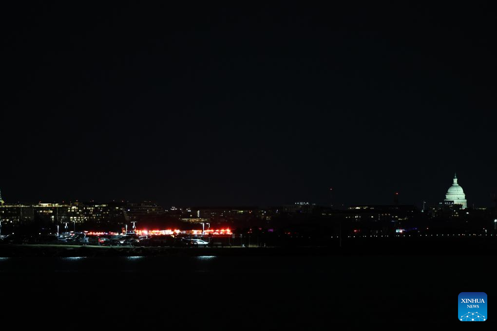 Emergency vehicles are seen near Washington's Reagan National Airport, the United States, on Jan. 29, 2025. A passenger jet collided with a helicopter on Wednesday while landing at Reagan National Airport, confirmed the U.S. Federal Aviation Administration (FAA). There were 60 passengers and four crew on board the flight that collided on approach to Washington's Reagan National Airport, according to the reports of CNN on Wednesday. Four people were recovered from the Potomac River and two bodies were found, and rescue is ongoing after the crash. (Xinhua/Hu Yousong)
