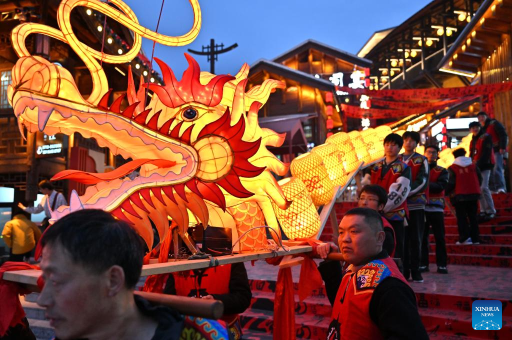 Tourists enjoy an artistic performance in Changxing County, Huzhou of east China's Zhejiang Province, Jan. 30, 2025. People enjoy various activities to celebrate the Chinese New Year which falls on Jan. 29 this year. (Photo by Zhang Ying/Xinhua)