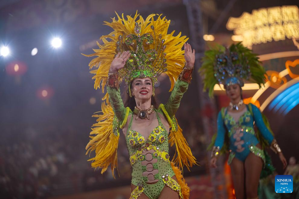 People perform during a parade in celebration of the Chinese New Year in Macao, south China, Jan. 31, 2025. A parade was held Friday by the Macao Government Tourism Office in Macao to celebrate the Chinese New Year, or the Spring Festival. (Xinhua/Cheong Kam Ka)