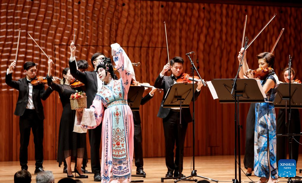 Musicians from Hong Kong String Orchestra and a Cantonese Opera performer perform during a Chinese Lunar New Year Concert at the Opera House in Sydney, Australia, Feb. 2, 2025. (Xinhua/Ma Ping)