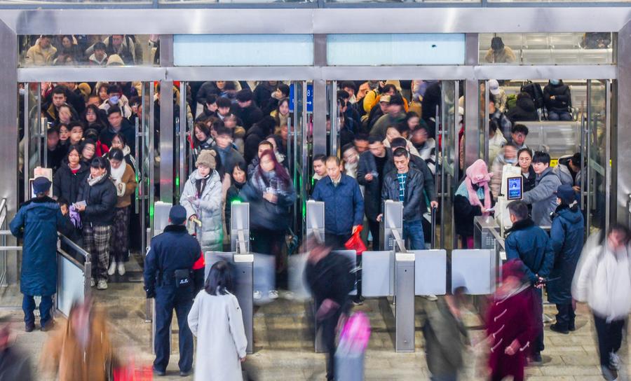 Passengers check in at Daozhou Railway Station in Yongzhou, central China's Hunan Province, Feb. 4, 2025. (Photo by Jiang Keqing/Xinhua)