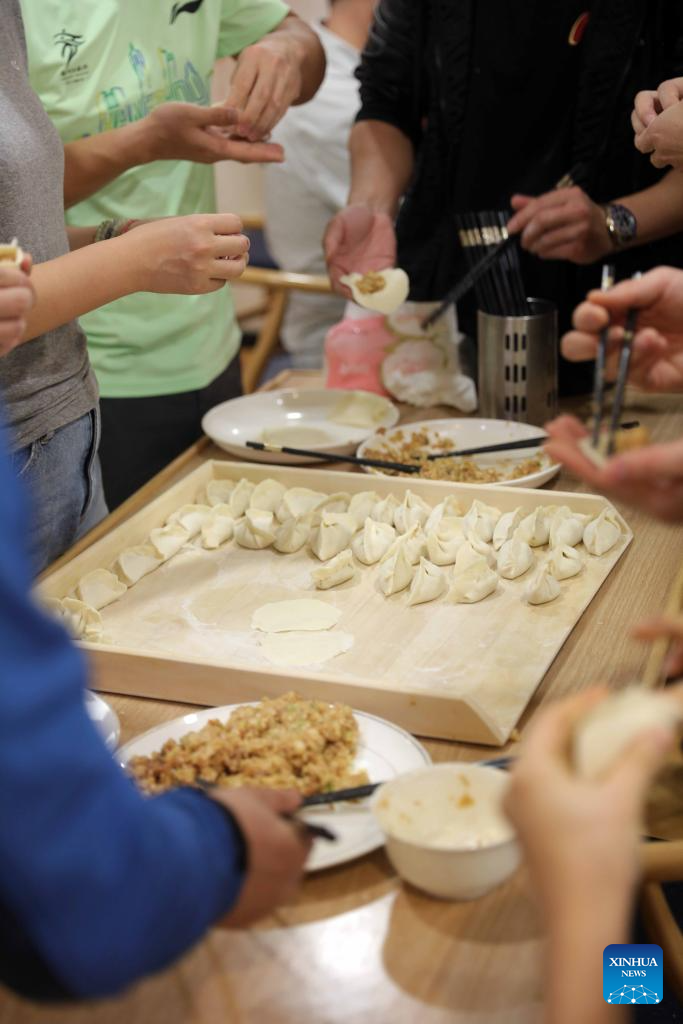 Members of China's 41st Antarctic expedition team make dumplings on Chinese research icebreaker Xuelong 2, Jan. 29, 2025. (Xinhua/Huang Taoming)