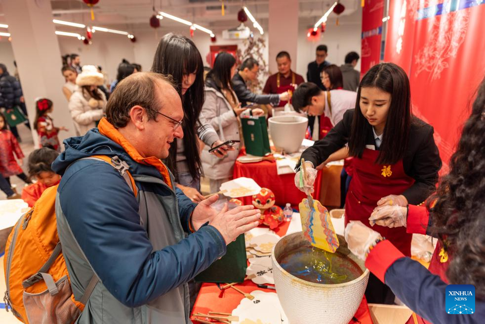 Ellisa, who only gave her first name, told Xinhua she had fun printing Chinese character "Fu" (fortune) with woodblock.